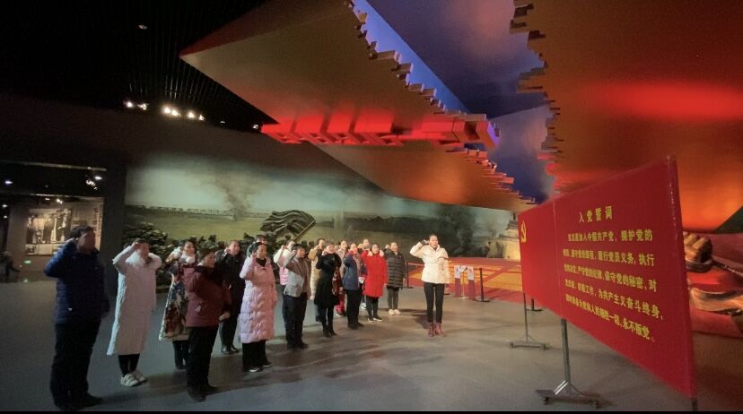 参观结束后,全体党员面向党旗庄严宣誓,重温入党誓词。