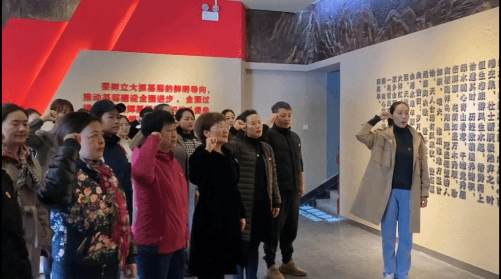 下午大家来到房干精神展馆重温入党誓词,铿锵有力的誓词传达出身为共产党员的自豪感和使命感,展现了大家为党的事业奋斗终身的勇气和决心。