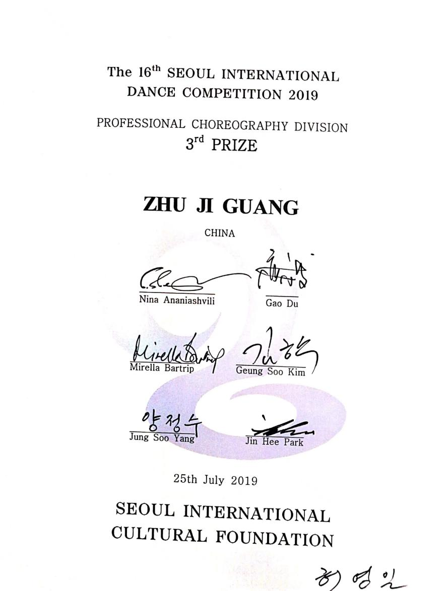 第十六届首尔国际舞蹈大赛专家编舞组铜奖