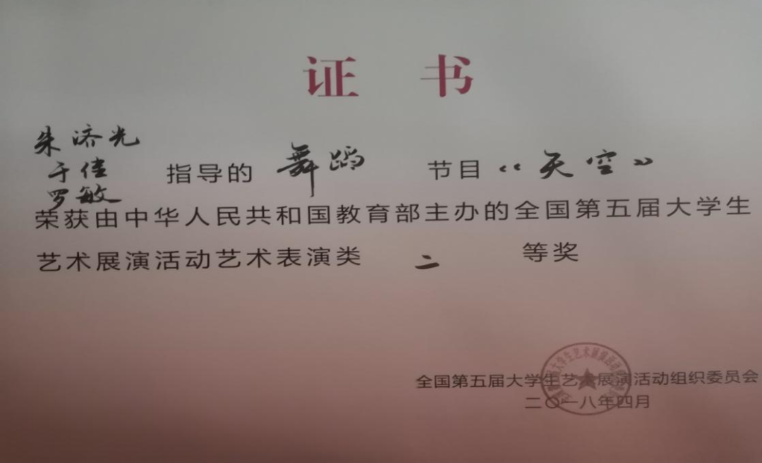 舞蹈《天空》获教育部全国第五届大学生艺术展演二等奖