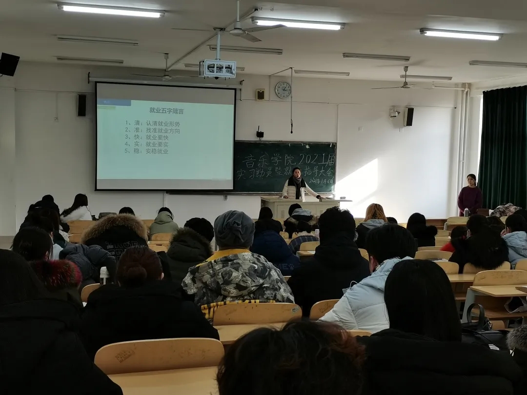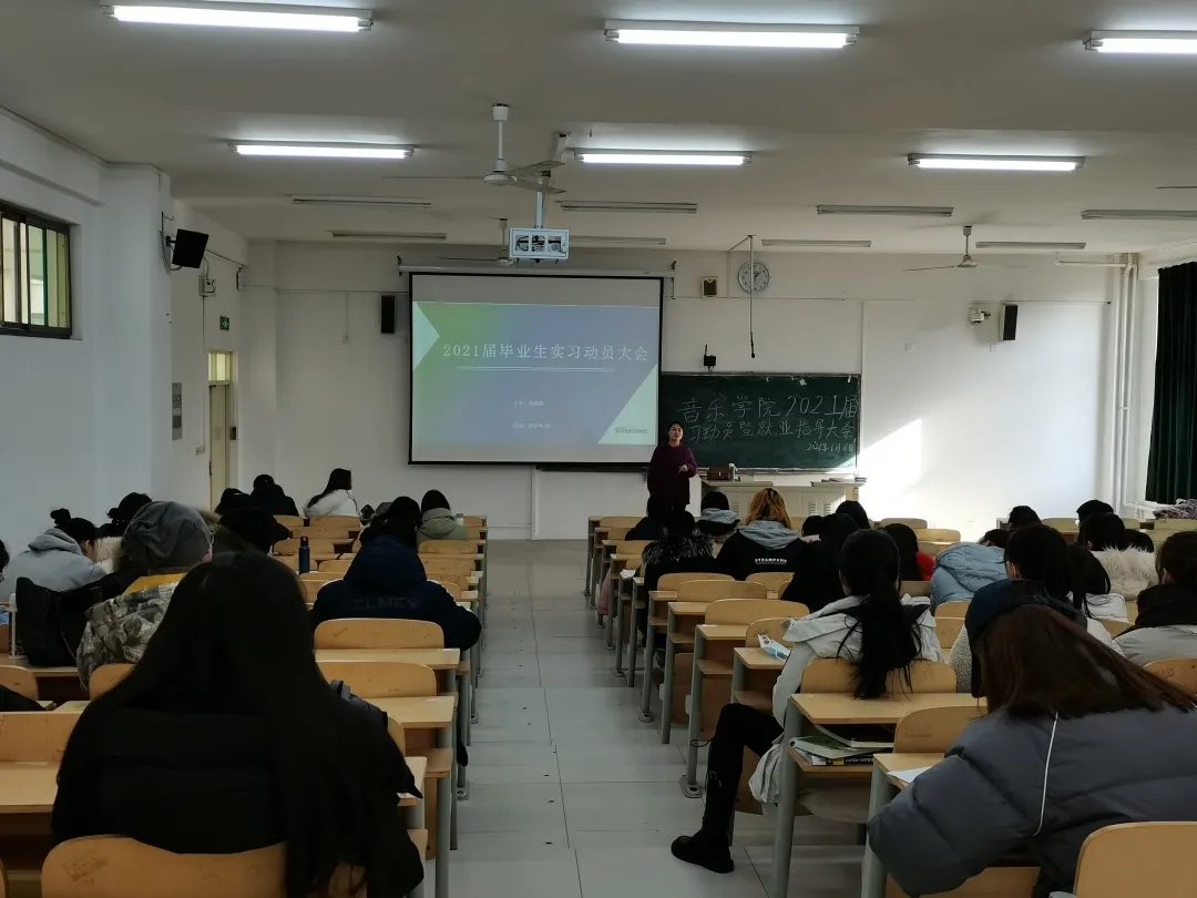 为开展好音乐学院2021届毕业生实习工作、促进学生就业、拓宽学生就业方向,2021年1月6日,音乐学院全体毕业生在博文楼407召开2021届毕业生实习动员暨就业指导大会。音乐学院器乐教研室主任刘禹彤,辅导员李梅华以及国立群山大学山东代表处的负责人李田出席本次会议。