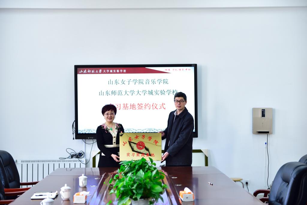 2018年4月18日下午,山东女子学院音乐学院校外实践实习基地挂牌仪式在山东师范大学大学城实验学校会议室举行。山东师范大学大学城实验学校副校长刘新生、邵胜林、司冬梅和山东女子学院音乐学院院长宋小霞、副院长马淑卿、刘平主任、林琳教授参加。