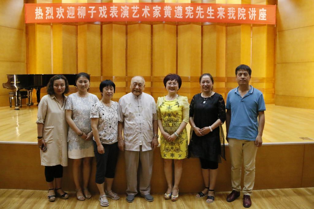 6月14日,著名柳子戏表演艺术家黄遵宪应邀到我校进行了柳子戏讲座,并受聘为我校客座教授。黄晓彦书记为黄遵宪先生颁发了聘书,双方在办公楼接待室进行了座谈。随后,黄遵宪先生在学校音乐厅进行了讲座,音乐学院全体师生参加了本次活动。