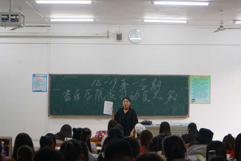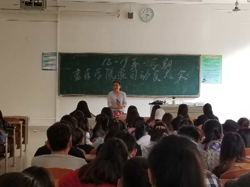 为加强对实习学生的管理和教育,确保安全顺利完成实习任务,音乐学院于2018年9月27日组织召开2018-2019第一学期实习动员大会。副院长马淑卿,器乐教研室主任刘晓飞、副主任刘禹彤、舞蹈教研室主任张崧以及2015级和2016级全体学生参加了动员会。