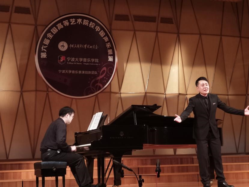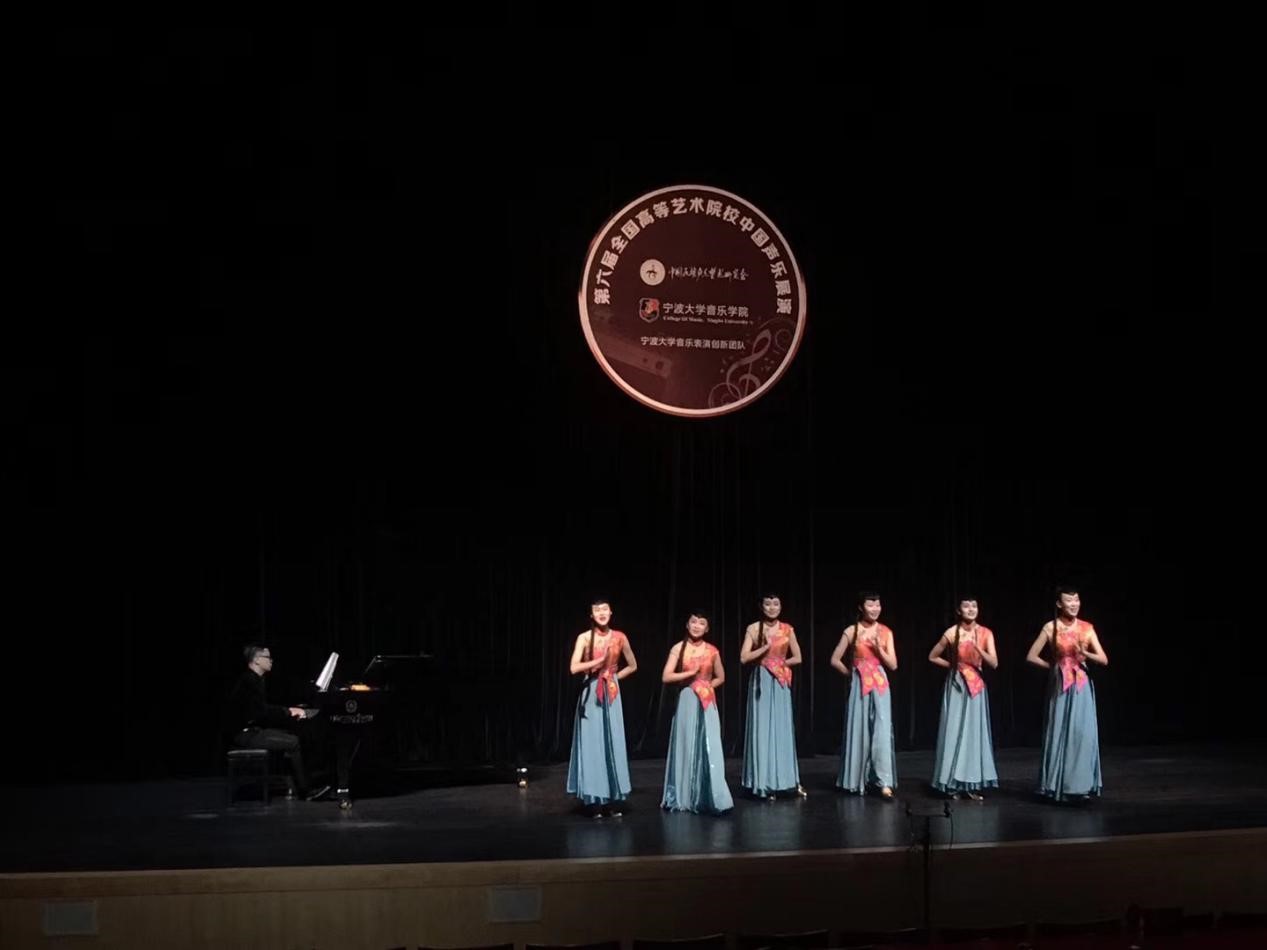 2018年11月3日,《第六届全国高等艺术院校中国声乐展演》总决赛在宁波音乐厅圆满落幕!经过激烈角逐,我院参赛师生分别获得一金一银的好成绩,青年教师秦利伟荣获第六届全国高等艺术院校中国声乐展演教师组金奖并参加了颁奖晚会的演出,由宋小霞院长、秦利伟老师指导的俏妹表演唱队荣获第六届全国高等艺术院校中国声乐展演本科组银奖。