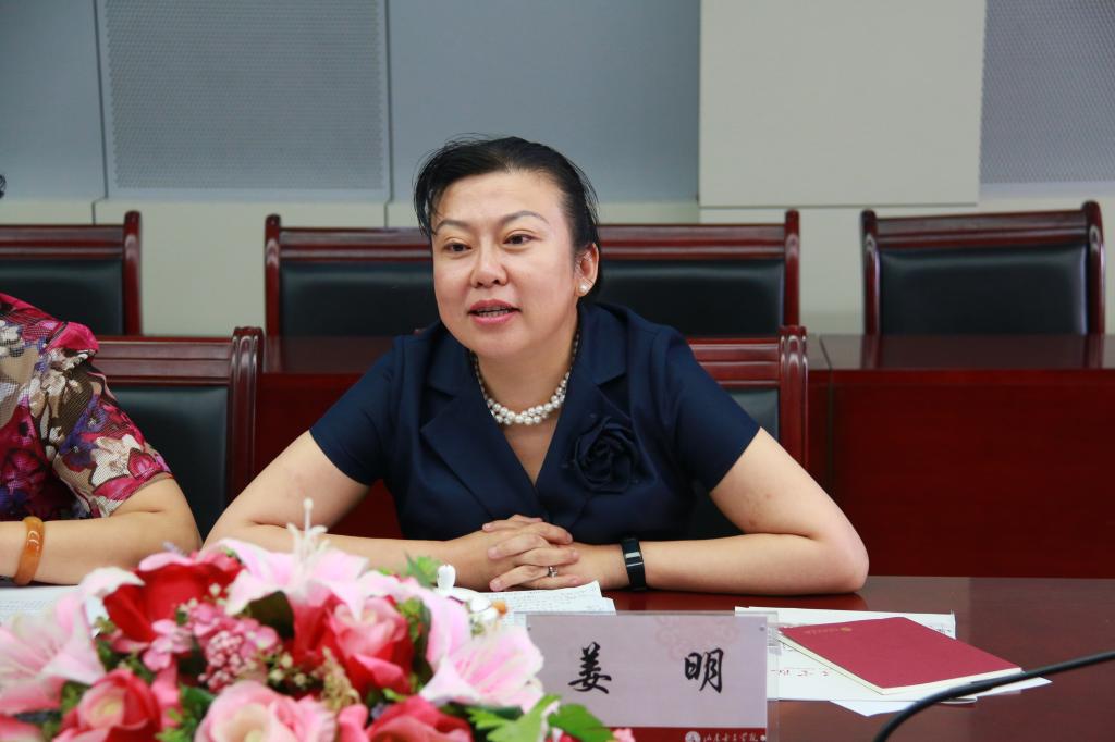 致公党中央妇女工作委员会副主任、省政协常委、致公党省委专职副主委姜明在会上讲话,她对学校在女性特色打造方面独特的优势和影响力给予成分肯定,并简要介绍了致公党山东省委在参政议政、民主监督、智库建设、服务地方经济发展方面的工作情况。她表示,致公党山东省委下一步将建设参政议政智库,发挥好民主党派的桥梁纽带作用,启动与高校的资源共享,智力互补与相互支持,为山东妇女事业发展做出成果做出成效。