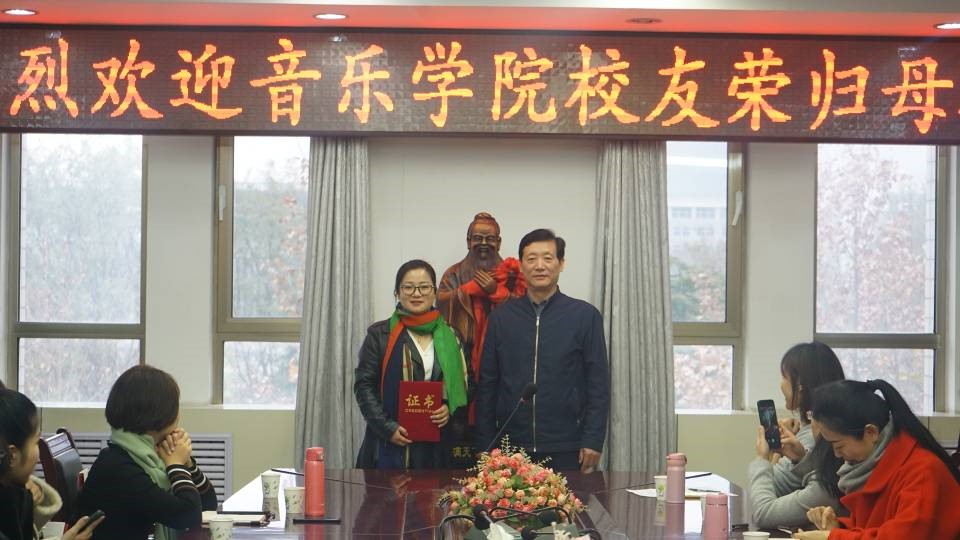 11月30日音乐学院举办校友返校系列活动。上午9:00在校行政楼三楼会议室举行了校友师生见面会。副校长贺兴利、科技产业管理处(服务地方办公室、校友办)负责人、音乐学院教师代表和部分校友参加了此次见面会。
