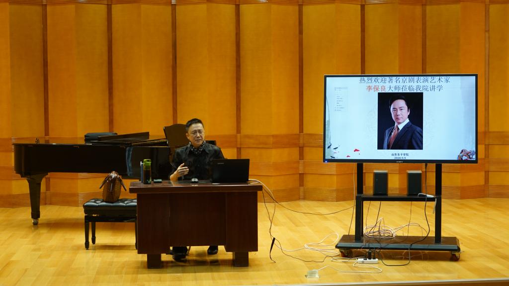 9月9日,音乐学院迎来新学期第一场文化讲坛之非遗经典唱段进课堂。济南市济南京剧院副院长、国家一级演员、著名京剧表演艺术家李保良受邀为同学们讲学京剧艺术。