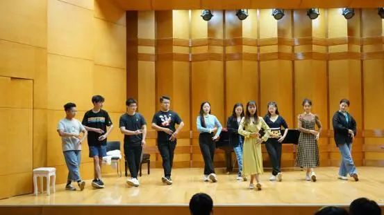 课堂最后,吴倩老师邀请同学们上台,指导同学走台步,以及戏曲基础练声方法,同学们仔细聆听吴倩老师的讲解和示范,学的惟妙惟肖。