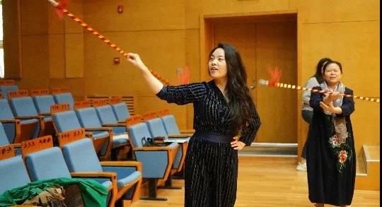 在互动交流环节,曲峰老师邀请学生学习了戏曲中武生的基本动作“枪”的用法。同学们十分积极踊跃的上台学习。我院老师也对武生中“枪”的用法产生了浓厚的兴趣,与同学们一同积极参与学习。虽然在台上的练习只有短短的一两分钟,但同学们纷纷表示,此次学习让他们深刻体会到了艺术家们“台上一分钟,台下十年功”。最后,曲峰老师示范并展示了京剧《闹天宫》中部分选段。曲峰老师技艺精湛的舞台表演,让同学们近距离领略到武艺表演的风采。