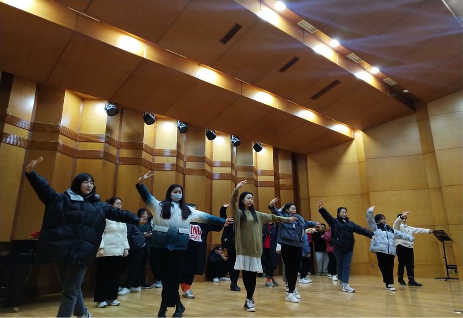 在进行完形体复习和学习后,吴倩老师先是带着学生们复习了上节课的京剧念白《贵妃醉酒》片段“丽质天生难自捐,承欢侍宴酒为年。六宫粉黛三千众,三千宠爱一身专。”又复习检查了《梨花颂》的唱段,让学生们更进一步的学习了京剧。