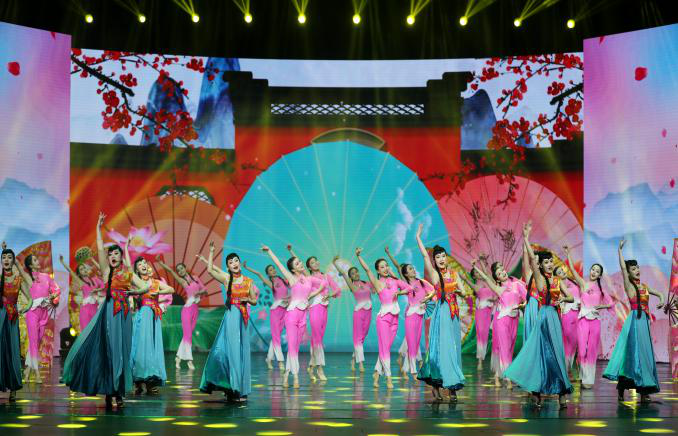 音乐学院38名师生参加了文艺晚会第二篇章的文艺演出,本次参演曲目女声表演唱《新绣荷包》由音乐学院院长宋小霞统筹,朱济光老师、于佳老师编导,秦利伟老师声乐指导联袂呈现。从接到邀约开始,到节目的编排只有不到十天的时间,恰逢临近期末,学生们课业繁重,又加上天气异常寒冷,可谓时间紧,任务重,但这丝毫没有阻挡学生们的积极性,热情高涨,不畏艰辛,克服重重困难。在排练过程中,经常加班到深夜,反复修改与打磨作品,只为能呈现出好的作品,再苦再累也值得,充分展现了师生们吃苦耐劳,扎实肯干的优良品质!女声表演唱《新绣荷包》将晚会现场气氛推向高潮,动听的歌声、俏美的舞姿,赢得了线上线下广大观众的热情鼓掌与支持点赞,完美展现了中国百姓在党的领导下的安居乐业及幸福的美好生活!
