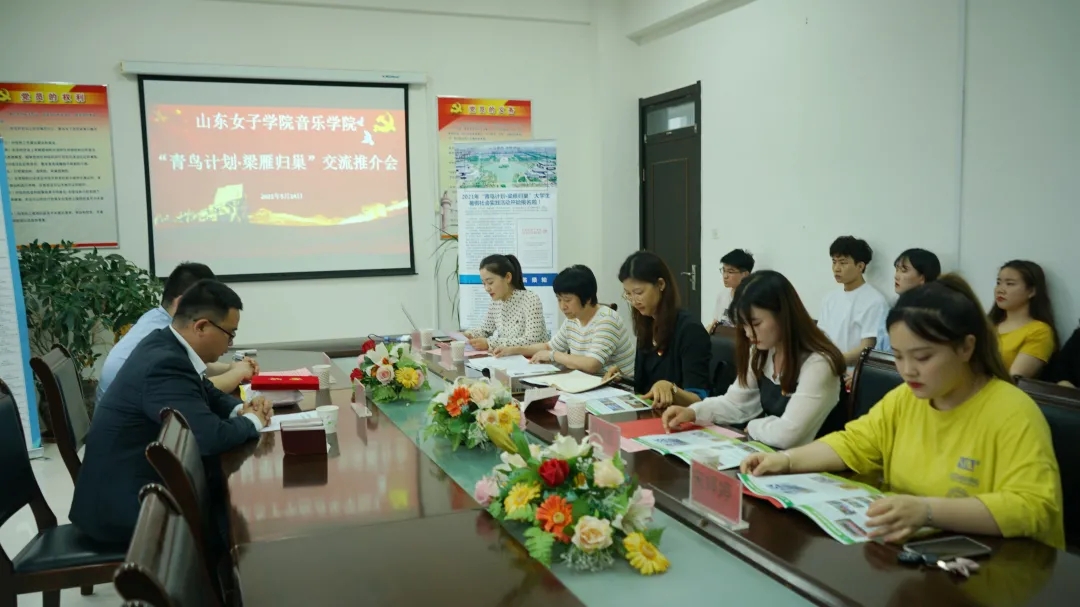 为贯彻落实共青团山东省委、校团委关于“青鸟计划”工作的部署安排,更好地服务梁山籍的大学生,切实推进“青鸟计划·梁雁归巢”深入开展,实现“引凤还巢”就业工作大局,2021年5月14日下午音乐学院团总支在博雅楼A216举办“青鸟计划·梁雁归巢”交流推介会。山东女子学院团委书记苏婧、音乐学院党总支书记刘凤华、梁山团县委副书记杜晗、梁山团县委金融挂职副书记李尚宾和部分青鸟驿站梁山站的同学参加交流推介会。会议由音乐学院辅导员李梅华主持。