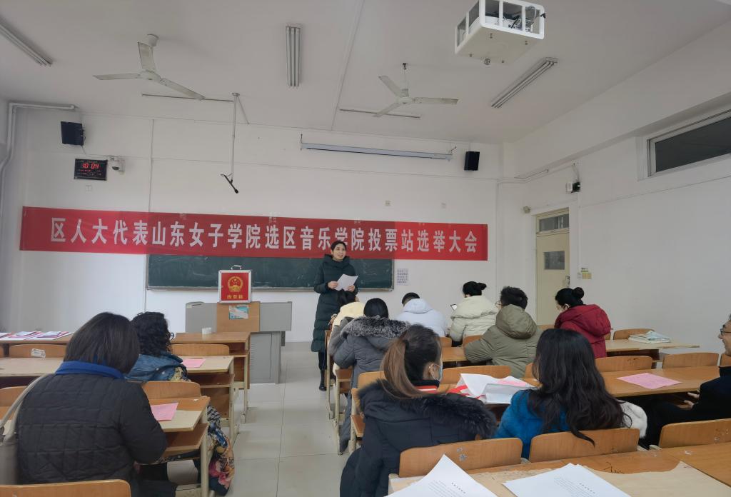 人大代表人民选,选好代表为人民。12月28日为济南市长清区选举投票日,我院作为山东女子学院音乐学院投票站,于博学楼106举行神圣的人大代表投票选举,大会分别由办公室主任张华萃和辅导员李梅华主持,全体在校师生参加。