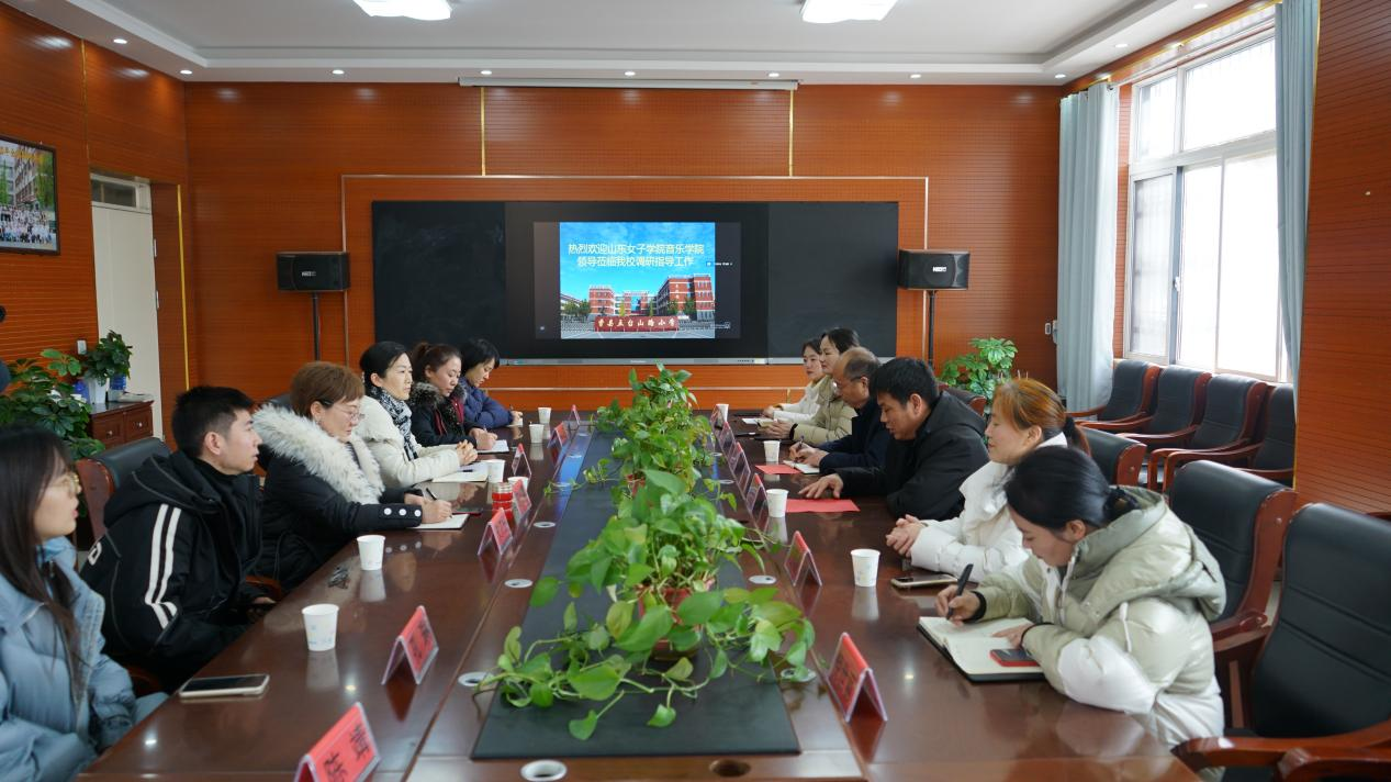我校是山东省15所美育浸润项目单位之一,为更好地制定2022-2024美育浸润计划方案,做到精准帮扶,2022年2月22日,山东女子学院音乐学院院长宋小霞带领学院骨干教师及工会妇委会老师们前往帮扶学校菏泽曹县五台山路小学、古营集镇中学开展“2022年度美育浸润行动计划调研座谈会”。曹县教体局政教股股长刘玉坤、刘照阁老师和曹县五台山路小学、古营集中镇中学的校长及全体音乐老师参加座谈。
