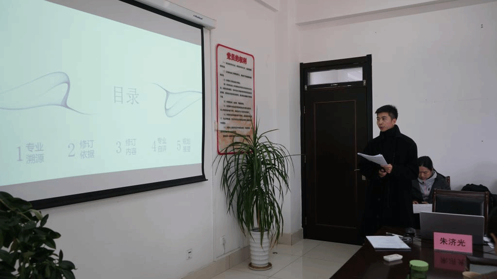 舞蹈教研室朱济光主任从舞蹈专业溯源、修订依据、修订内容、专业自评、规划展望五个方面进行了汇报。根据大量调研情况,对人才的能力需求、课程设置与课程内容等进行了有力的分析,提出“重实践、能教学、会编创”三位一体的舞蹈学课程教学体系,结合学校1+3+N特色发展强调舞蹈学专业建设的女性特色,为探寻女性视域下的舞蹈创作与研究奠定基础。