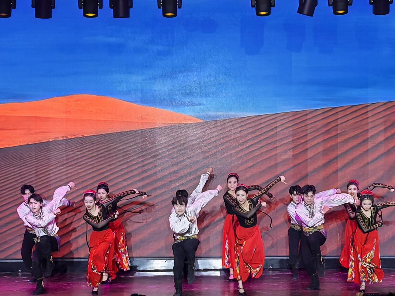 第二篇章----熠今朝,舞台演绎剧目篇。《榫卯》将舞蹈与传统太极相融合,展现出既具有现代感又不失传统韵味的舞蹈作品;《潇洒》洋溢出来自大自然的勃勃生机,呈现出一派豪放与自信的天之骄子的气概;维族舞《送我一支玫瑰花》舞步轻盈飞如燕,舞姿曼妙似玫瑰;藏族双人舞《噶鲁情歌》抒发着细腻柔情的情感,一招一式都体现着浓浓藏族韵味;《春的高原》展现出一群藏族青年男女欢快愉悦地舞蹈画面,体现出舞者对生活充满了乐观和积极向上的态度;《惑心》展现了人性中光明与黑暗、欲望与初心的挣扎;《希格希日》充满了任由自然、拥抱世界辽阔的雄心与自豪。