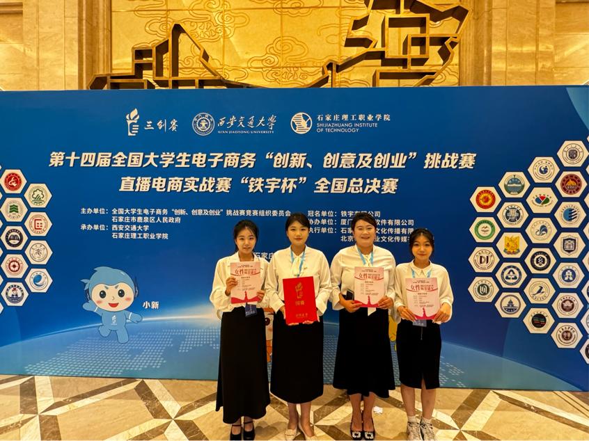 7月24至25日,第十四届全国大学生电子商务“创新、创意及创业”挑战赛直播电商实战赛“铁宇杯” 全国总决赛在石家庄理工职业学院举行,来自全国99所高校的86支队伍参加总决赛。我院团队通过校赛、省赛、国赛的层层角逐,由宋小霞院长带领的辅导员李梅华老师和年轻博士孙颖姗、曲征老师指导的《女性味蕾盛宴》项目,最终脱颖而出获得国赛一等奖,创造了我校三创赛直播电商实战赛道最好成绩,实现了我院三创赛国赛零突破。