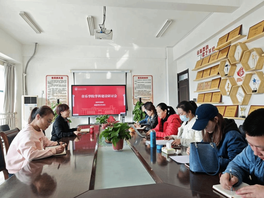 为进一步提升学院学科建设水平和专业人才培养质量,打造特色鲜明的音乐教育品牌,2025年3月10日,音乐学院召开学科建设与专业建设研讨会。院长宋小霞、副书记吕梅、院长助理、各教研室主任以及教务员参加会议。