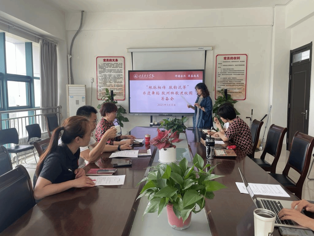 2025年5月13日,音乐学院于博雅楼A216召开“根脉相传 胶韵流芳——非遗舞蹈胶州秧歌进校园”活动筹备工作会议。学院党委书记曲常军、院长宋小霞、党委副书记吕梅出席会议,舞蹈教研室教师代表及相关部门负责人共同参与研讨,围绕活动方案、文化传承与时代价值展开深入交流。