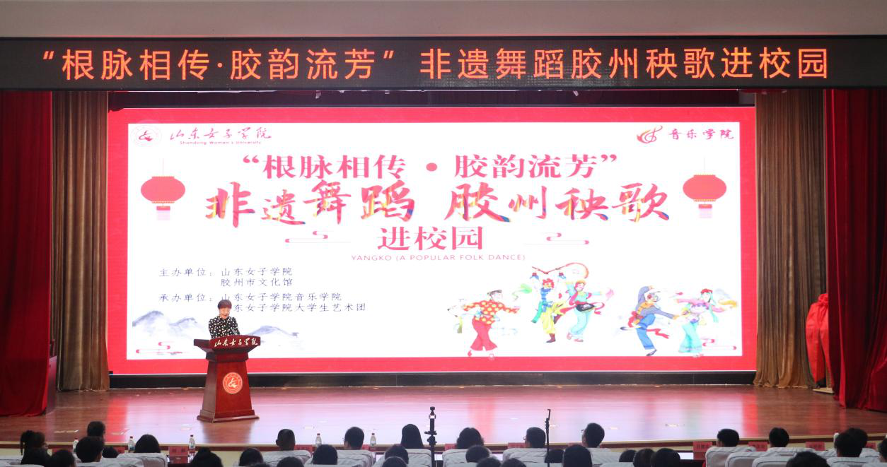 5月15日,“根脉相传·胶韵流芳”非遗舞蹈胶州秧歌进校园启动仪式在山东女子学院图书馆二楼报告厅举办。山东女子学院副校长刘恩允、胶州秧歌传承人、音乐学院师生代表等共计300余人参加会议。会议由音乐学院院长宋小霞主持。