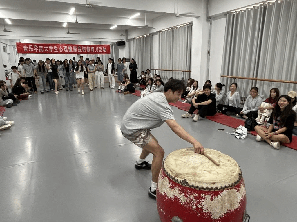 为普及音乐疗愈知识,帮助学生舒缓压力、调节情绪,5月29日下午,由学生工作处大学生心理健康教育指导中心主办、音乐学院承办的“乐动心声,乐愈心灵”音乐治疗主题活动在求实楼103舞蹈房成功举办。本次活动吸引了全校60余名同学热情参与。