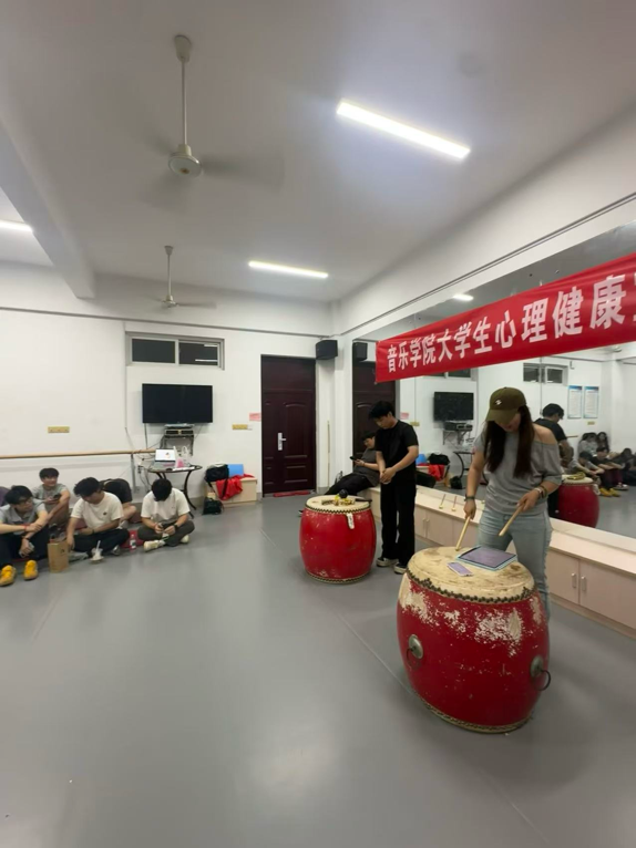 在音乐治疗知识普及环节,音乐学院专业教师梁天从基础的节拍节奏入手,亲自示范如何通过打节拍调节呼吸、稳定情绪,并深入浅出地讲解了不同节奏类型对心理状态的积极影响。梁天老师强调,“掌握简单的节拍技巧,能在紧张时帮助我们快速平复心情。”现场同学在梁老师的专业指导下,认真练习基础节拍,气氛轻松而专注。