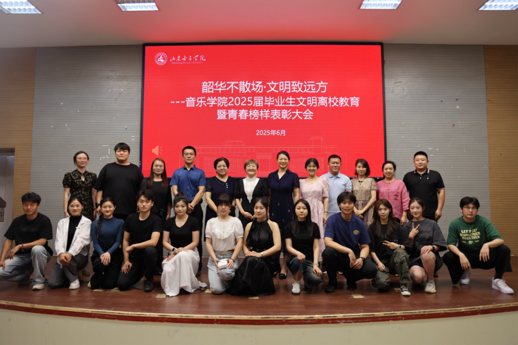 2025年6月18日,音乐学院在图书馆一楼报告厅成功举办““韶华不散场·文明致远方”——2025届毕业生文明离校教育暨青春榜样表彰大会。图书馆、体育教学部、学生工作处、校团委等部门负责人以及音乐学院师生代表参会。