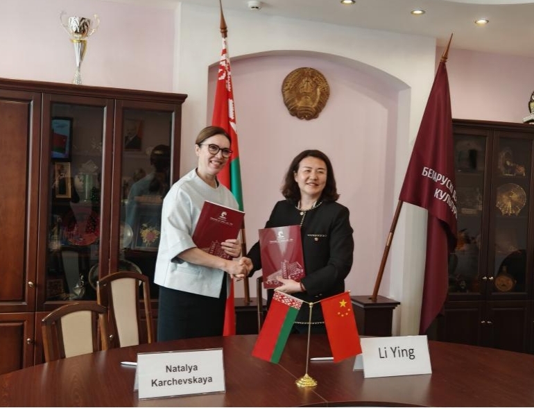 白俄罗斯国立文化艺术大学校长娜塔莉娅·卡尔切夫斯卡娅率科研副校长叶莲娜·科尔萨科娃、思政教育副校长尤利娅·佩尔西茨卡娅及国际交流处处长瓦季姆·萨马季亚等校方领导热情接待,双方围绕人才培养、文化艺术交流、教育资源共享、创作实践联动、科研项目共建等议题展开深度研讨。