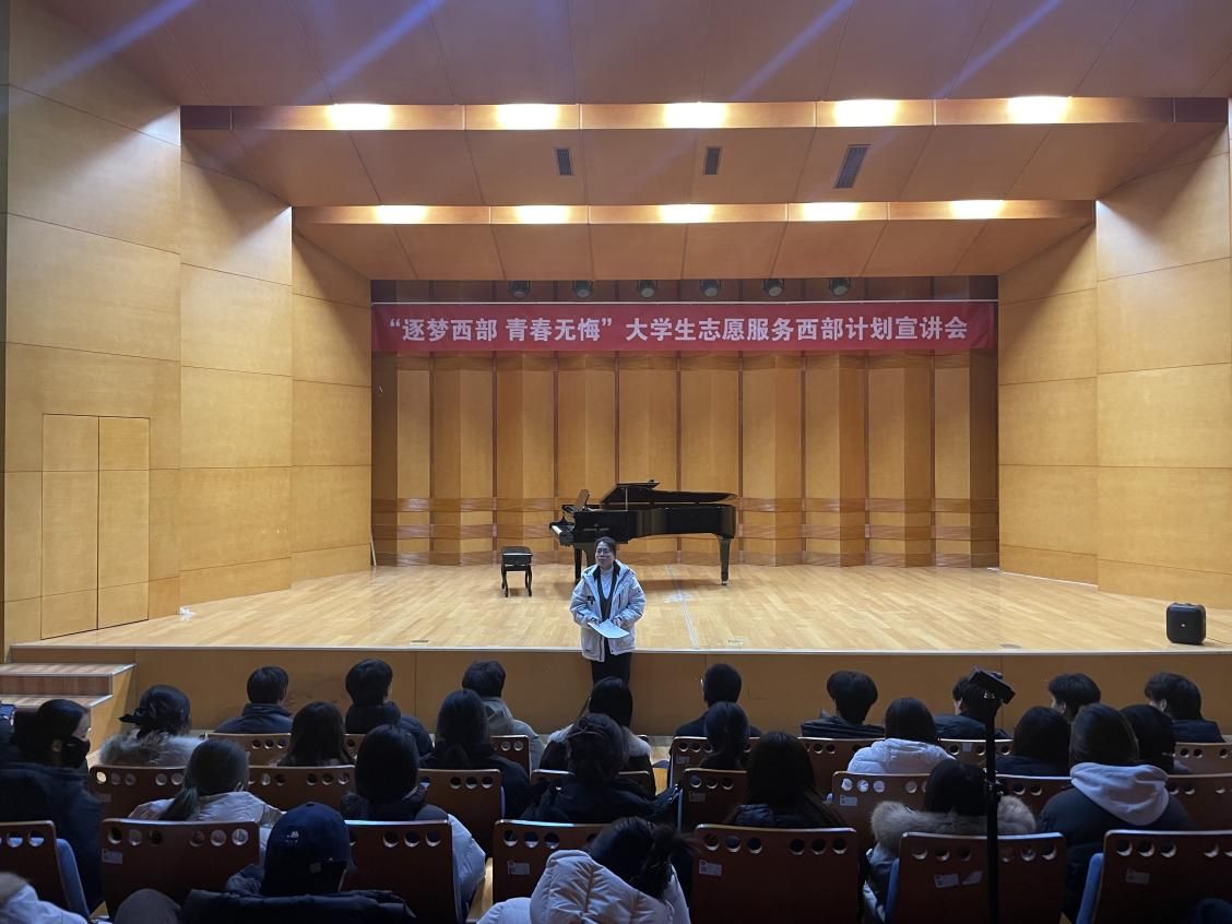 为扎实做好2026届毕业生就业服务工作,引导学子积极投身西部建设,12月22日下午,音乐学院举办“逐梦西部 青春无悔”西部计划专场宣讲会。会议由学院党委副书记吕梅主持,党委书记曲常军出席,2026届毕业生代表参会。
