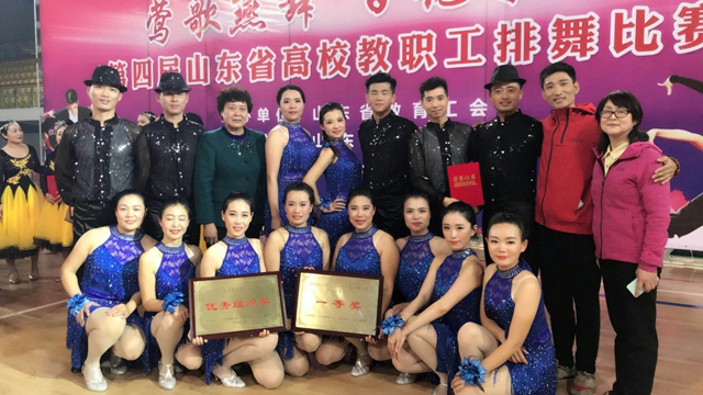 为践行党的十九大报告提出的广泛开展全民健身活动,满足教职工多元化、多层次的健身需求,提高广大教职工健身意识和体能素质,11月1日—2日,由山东省教育工会组织的第四届山东省高校教职工排舞比赛在山东交通学院体育馆举办。来自全省22所高校的300余名教职工参加了比赛。我校16名中青年教职工参赛,荣获“团体一等奖”和“优秀组织奖”,朱济光老师和田巍巍老师分别荣获“优秀教练员”“优秀运动员”称号。