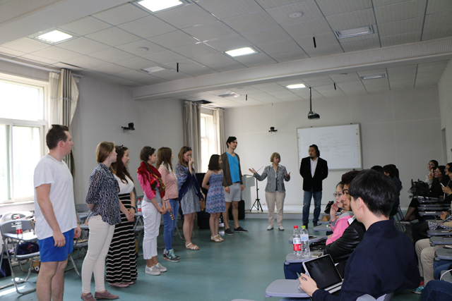 演出后,来自莫斯科市立师范大学的华人教师姜尚荣给同学们进行了精彩的声乐指导,前沿的声音观念、精彩的示范讲解使同学们受益匪浅。与此同时,教育学院的宋小霞教授也为俄罗斯民族合唱团的学生们上了一堂生动的声乐课。