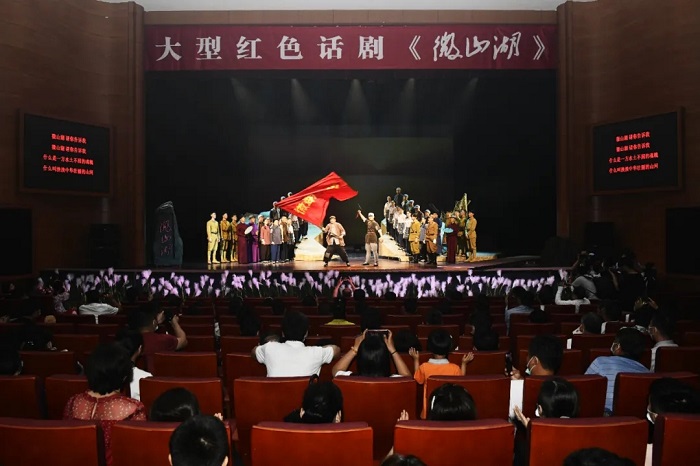6月30日,恰逢建党百年的节点,学院参演山东演艺集团出品的原创红色话剧《微山湖》在济宁声远舞台首演成功,借此向党的百年华诞献礼。