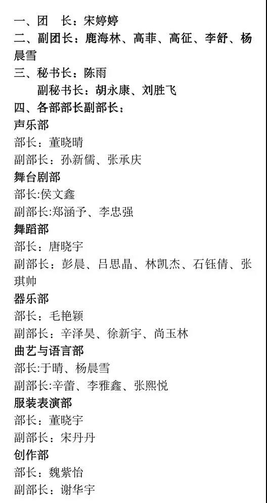 期待新一届大学生艺术团学生干部能在各级领导老师们的支持指导下,不忘初心,求实创新,坚持“以专带全”,发挥艺术团美育功能,助力我校校园文化建设。