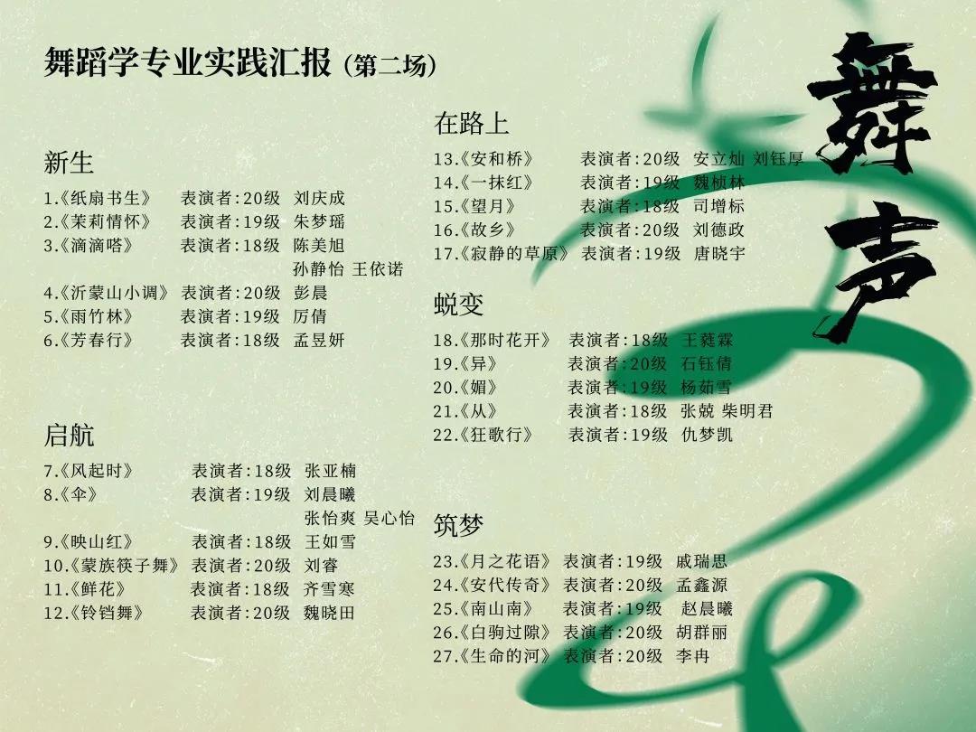 在这冬去春来、百花齐放的美好四月,舞蹈学的同学们于4月1日,在博雅楼音乐厅迎来第二场专业汇报。经过了第一场汇报后,同学们沉淀内心,梳理自我,重新定义人生下一阶段的目标和理想。