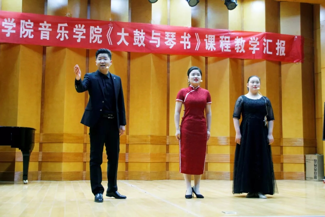 为更好地传承和保护非物质文化遗产,将非物质文化遗产引进校园,引导更多新时代青年关注非物质文化遗产,继承优秀传统文化,12月2日下午我院在博雅楼音乐厅成功举办《大鼓与琴书》课程教学汇报。本场活动特邀济南市曲艺团书记团长、济南市曲艺家协会主席李洋,济南市非遗保护协会副会长、副秘书长秦绪荣,济南市非遗保护中心书记、市非遗保护协会顾问李梅海,山东广智文化传播公司总经理吕晓娜参加,音乐学院党总支书记刘凤华、副院长马淑卿以及音乐学院部分师生共聚一堂,欣赏一场独具特色的山东琴书教学汇报表演。