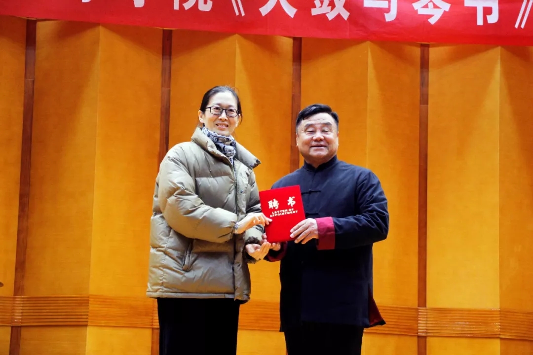 活动伊始,马淑卿介绍了音乐学专业及课程教学情况。近年来,音乐学专业积极践行美育人才培养,将优秀传统文化融入到课程教学和实践教学,发扬光大优秀传统文化的人文精神,激活中华优秀传统文化的强大基因,此门课程很好的做到了这一点,与我院人才培养达成一致。马院长为济南曲艺团副团长、国家一级演员魏务良老师颁发客座教授聘书。随后,18级音乐学专业的同学们进行节目汇报,展示学习成果。同学们分组搭档演唱琴书经典曲目《偷年糕》、琴书版《说唱脸谱》等,表演生动有趣,韵味十足,赢得观众掌声不断。