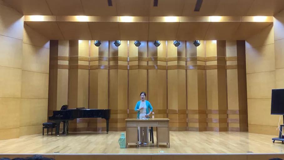 在授课过程中,刘老师向同学们介绍了旦角的流派(梅、尚、程、荀),通过示范讲授,让同学们认识了“生、旦、净、丑”,明白了“行当”、学会了“叫好”、体验了戏曲动作中的“虚拟性”、切身感受戏曲表演的“程式性”。在教唱戏曲唱段《梨花颂》过程中,老师从腔体到曲调间的辗转糅合,每个字的发音都进行了极为严谨的教学和范唱。课堂中深入浅出的讲解和互动以及经典的范唱,那一颦一笑、一举一动让同学们零距离领略国粹艺术的魅力,感受到京剧艺术焕发的光彩。