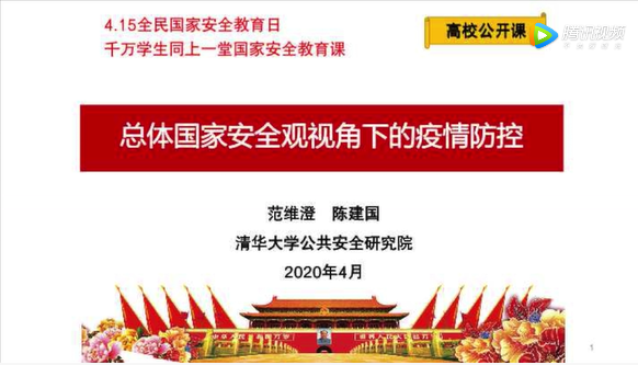 4月15日是我国第五个国家安全教育日,在这一天到来之际,教育部邀请清华大学公共安全研究院公共安全领域专家范维澄院士在线上为千万学生同上一堂国家安全教育课。4月14日,音乐学院组织全体学生线上收看了本次讲座。讲座主题为《总体国家安全观视角下的疫情防控》,范教授从总体国家安全观、生物安全与公共卫生安全治理、此次新冠肺炎疫情对社会发展的影响、维护公共卫生安全和生物安全、面对疫情大学生应如何做五个方面进行阐述。