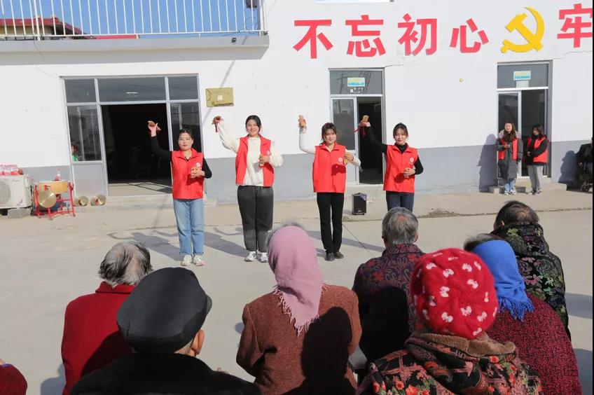 随后,同学们为老人们展示了精心准备的文艺节目。《越人歌》《锦瑟》用婉转的曲调,让大家感受古人含蓄的情感表达;快板《垃圾分类我先行》用快板的形式将垃圾分类的知识带给老人们;《赶墟归来阿哩哩》曲调明朗,领略改革开放后少数民族地区农村翻天覆地的变化,展示出党的好政策给人们带来的幸福生活;合唱《爱我中华》表现出一种载歌载舞的喜悦之情,各族人民团结一致,深深勾起了大家强烈的民族自豪感;声情并茂的《姊妹易嫁》表演向老人们展示了吕剧的艺术风采……院子里欢笑声、鼓掌声、喝彩声不断,气氛非常活跃。