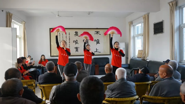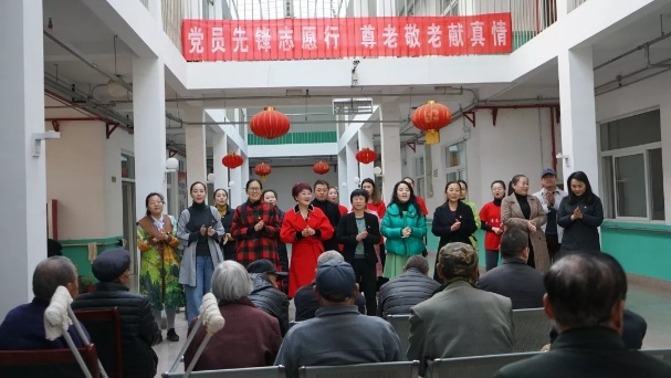 此次慰问演出由音乐学院教师党员和学生党员共同演绎,感人肺腑的独唱《母亲》、《芦花》;创意新颖的表演唱《新绣荷包》、《再唱沂蒙山》;美轮美奂的舞蹈《妞出嫁》;幽默诙谐的快书《捎枣》,唱出了激情,舞出了青春,为平日清净的养老院增添了欢快热闹的气氛。演出最后,全体党员师生共同齐唱《我爱你中国》,博得在场老人和敬老院职工的笑声连连、掌声不断。音乐学院党员师生们敬业、精湛的表演也将浓浓的敬老之情注入到每一位老人的心里。