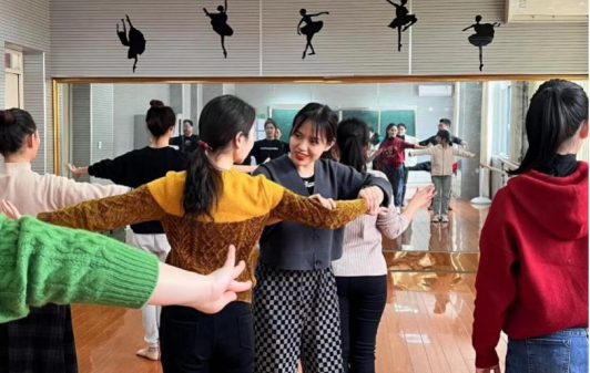 (一)为了帮扶地方中小学更好地开展美育实践活动,学校分批次为师生开展声乐、合唱、舞蹈、律动操、打击乐、民乐、即兴伴奏、音乐欣赏等课程,并分批次重点打造合唱社团、民族民间舞社团、律动操社团、打击乐社团。提升师生专业技能的同时,在春风化雨中提高同学们发现美、认识美、追求美的意识。