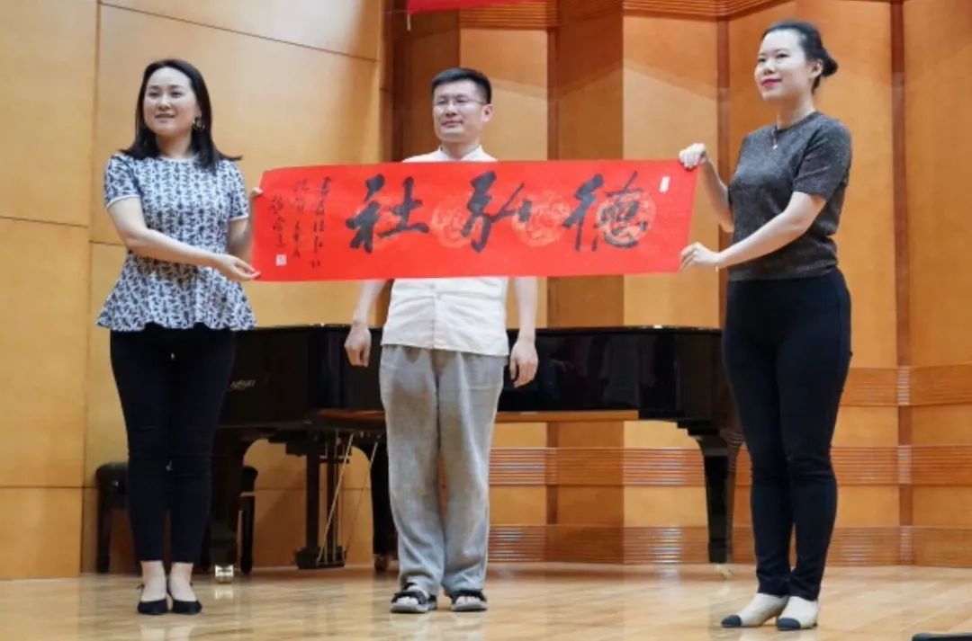 2019年5月30日下午,由山东女子学院大学生艺术团曲艺与语言部主办,音乐学院等二级学院协办的山东女子学院大学生曲艺与语言部首届相声戏曲专场在博雅楼音乐厅拉开帷幕。学生处处长王永泉,团委副书记苏靖,音乐学院院长宋小霞等领导老师出席了本次活动,与同学们一起观看了本次演出。演出前赵崇立老师还特意为德弘社赠字,以表对德弘社的支持与鼓励!