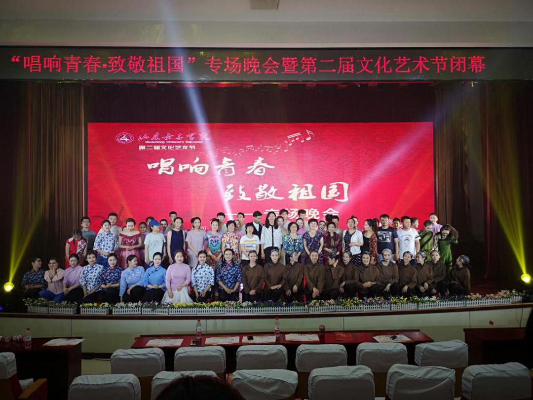 为丰富校园爱国主义教育活动,推动我校艺术美育教育的发展,2019年6月3日晚由山东女子学院音乐学院、山东女子学院团委主办,大学生艺术团承办的“唱响青春·致敬祖国”专场晚会在图书馆二楼报告厅举办。出席本次晚会的嘉宾有山东女子学院宣传(统战)部部长李君、学生处处长王永泉、团委副书记苏婧,以及学校部分师生。