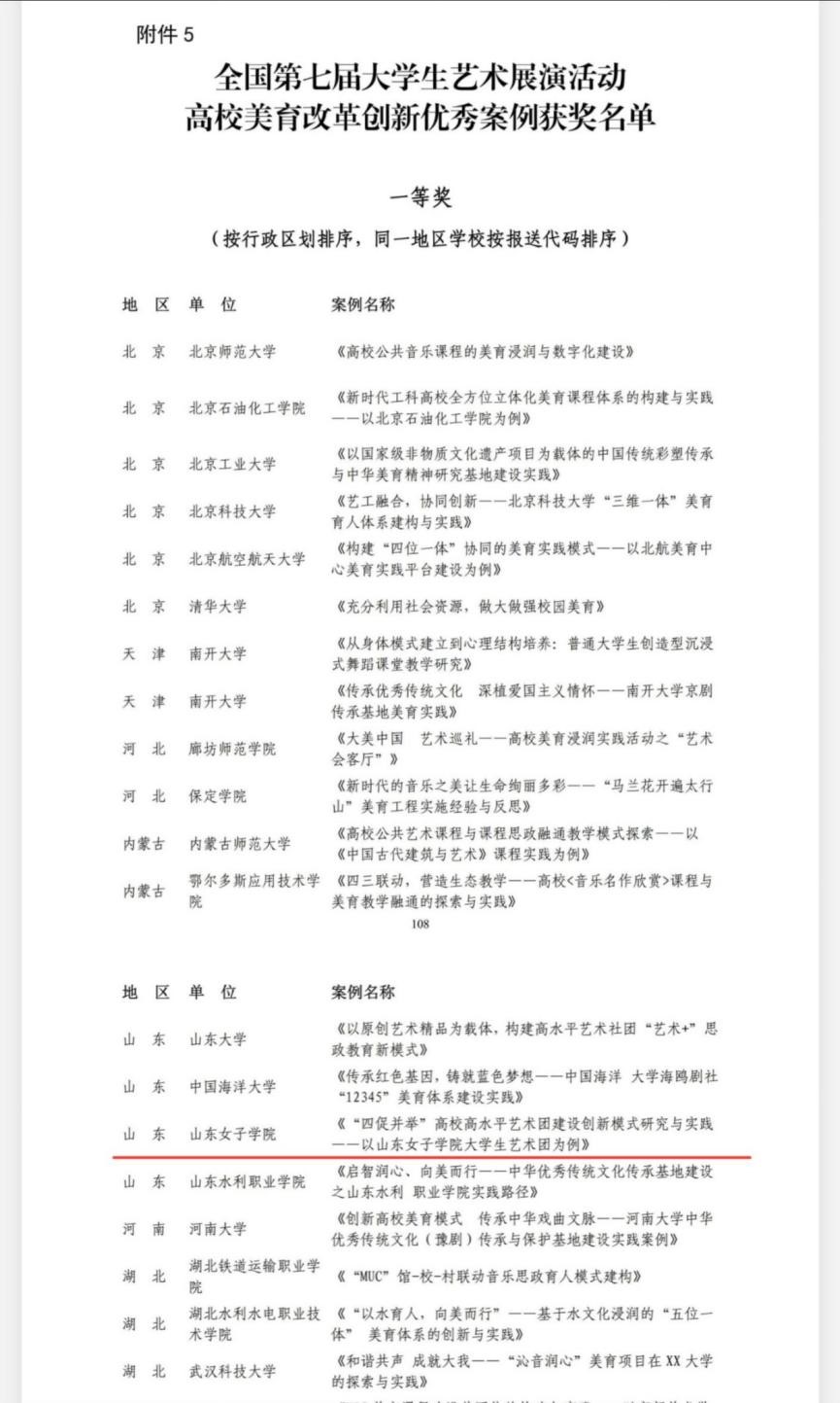 获奖案例充分展现了山东女子学院落实立德树人根本任务,注重发挥音乐学院专业优势,以点带面辐射带动全校美育工作的开展,坚持以美育人,培根铸魂,实施美育浸润行动计划,以“四促并举”创新模式引导高水平艺术团建设。