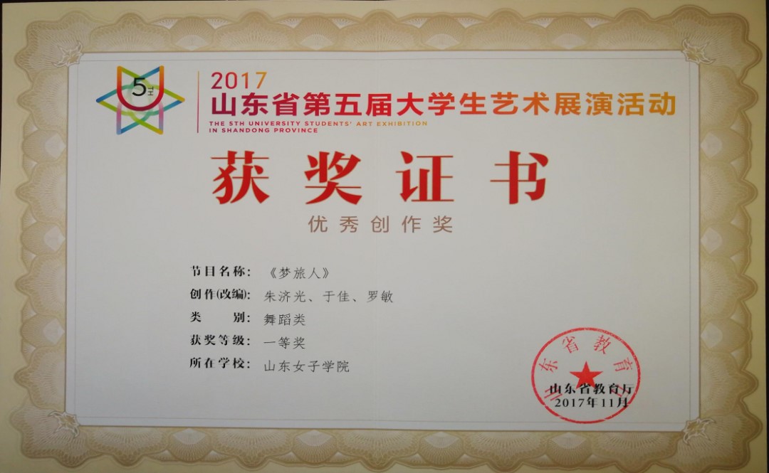 舞蹈《梦旅人》获山东省第五届大学生艺术展演一等奖